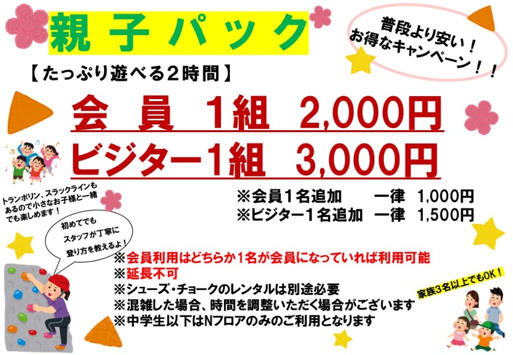 親子パックを開催いたします。